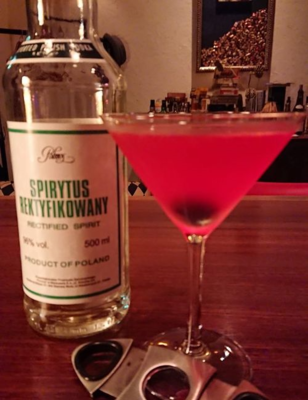 スピリタスを30ml、レモンジュース15ml、グレナデンシロップ15mlを素早く