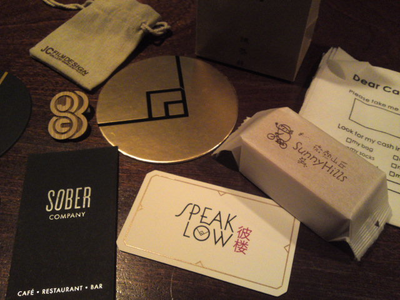 旧コースターやショップカード、ジャッキーチェン博物館のバッジetc
