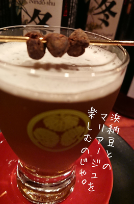 ・ブルーキュラソー・・・・・2tsp *シェークしてグラスに注ぎ、浜納豆を添える。
